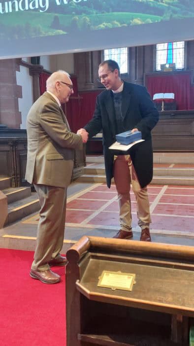 We said goodbye to Malcolm Rooney who has been our locum for nearly 6 years. David Adams our session Clerk presented him with his farewell gifts on behalf of Brechin Gardner & Farnell Churches. Peter George also presented him with a wee friend to remind him of his time with us.